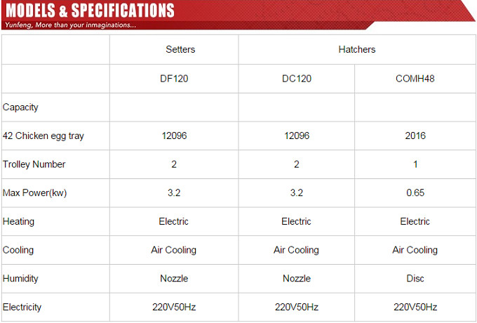 The standard large incubators are using 380V50Hz 3phase, and small models 220V50Hz single phase power,